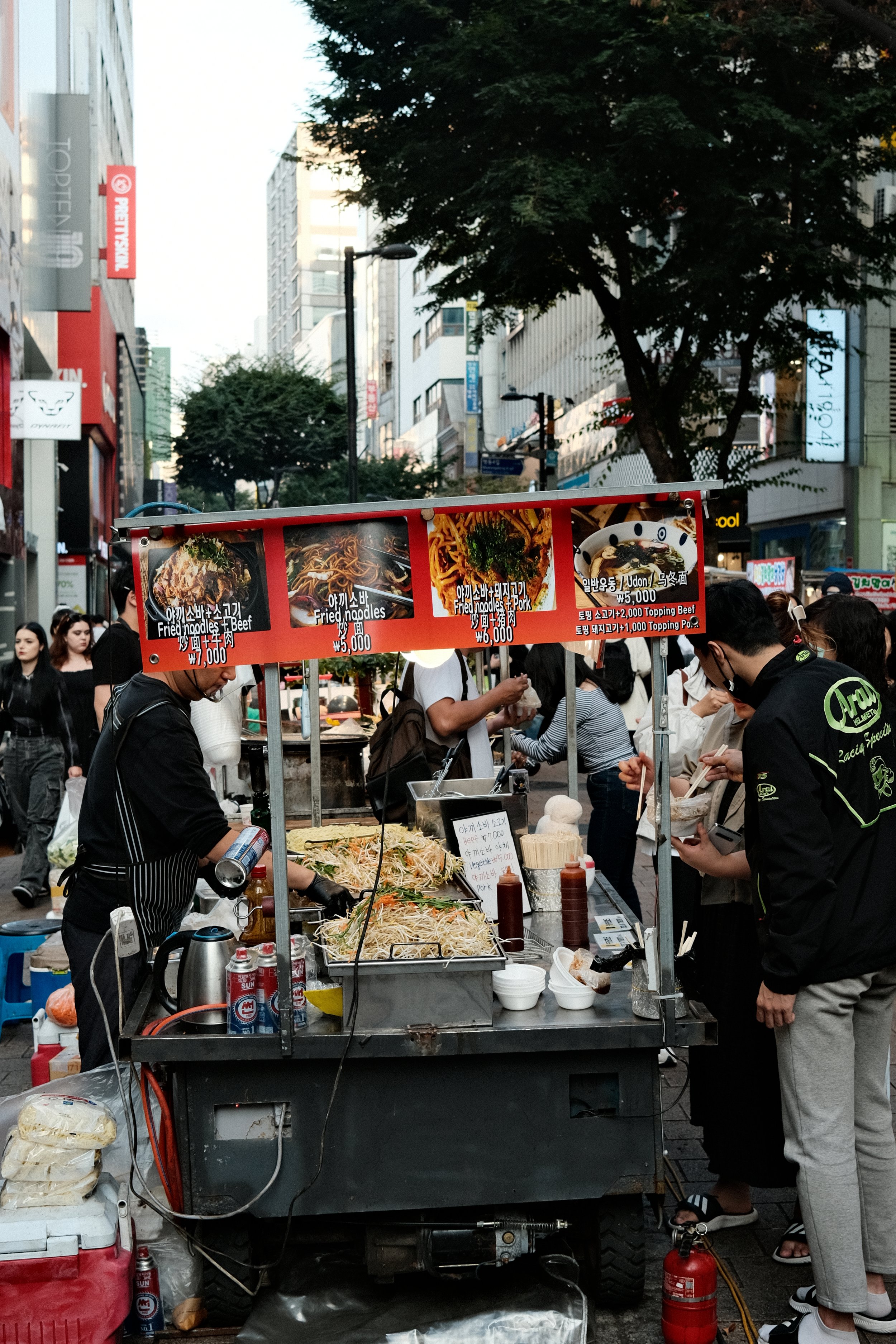Myeongdong Street Market is a hot tourist destination with a variety of food options.