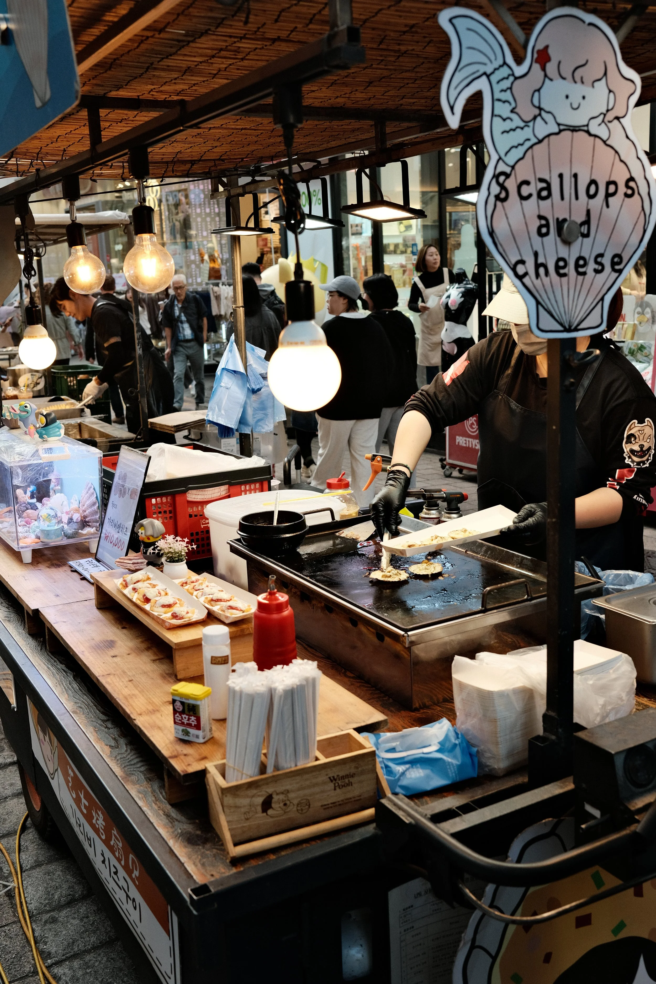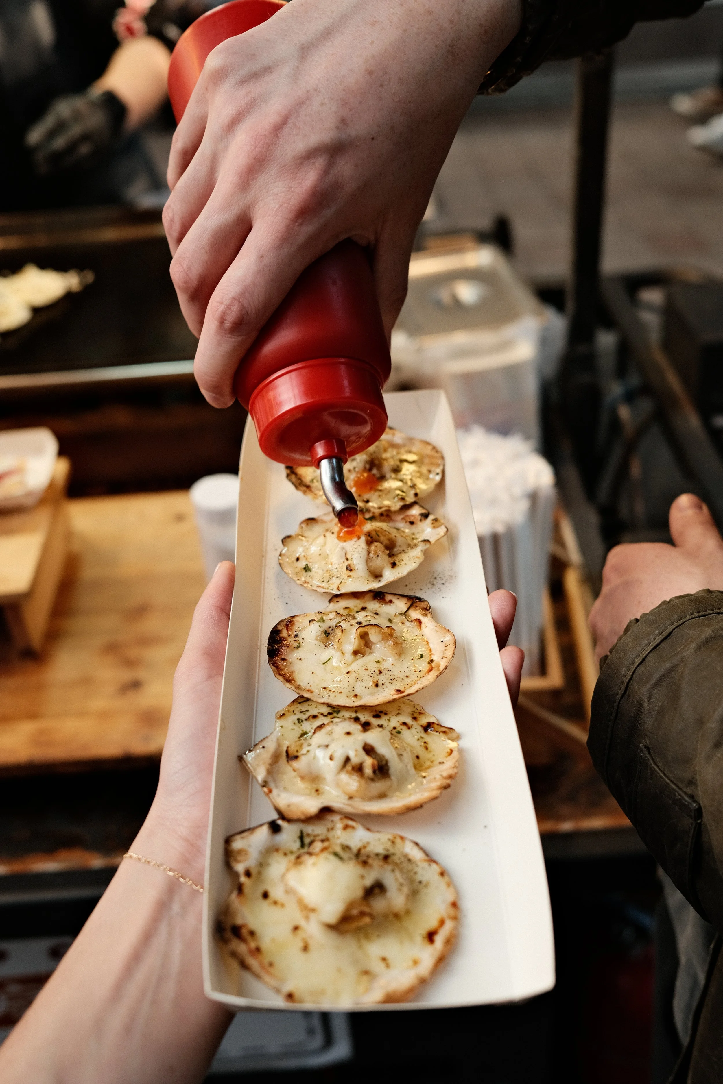 Eat grilled scallops with cheese at Myeongdong Street Market