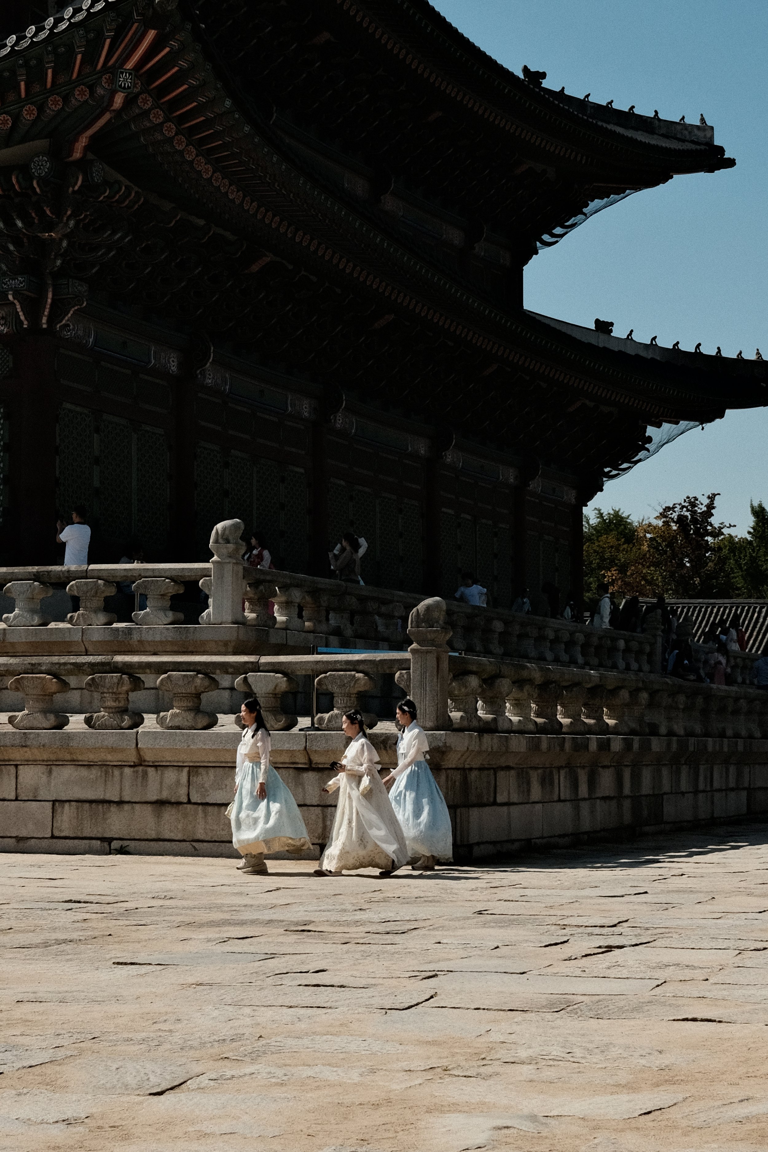 While visiting Gyeongbokgung Palace, you'll see many visitors (local and international) wearing rented traditional hanboks.