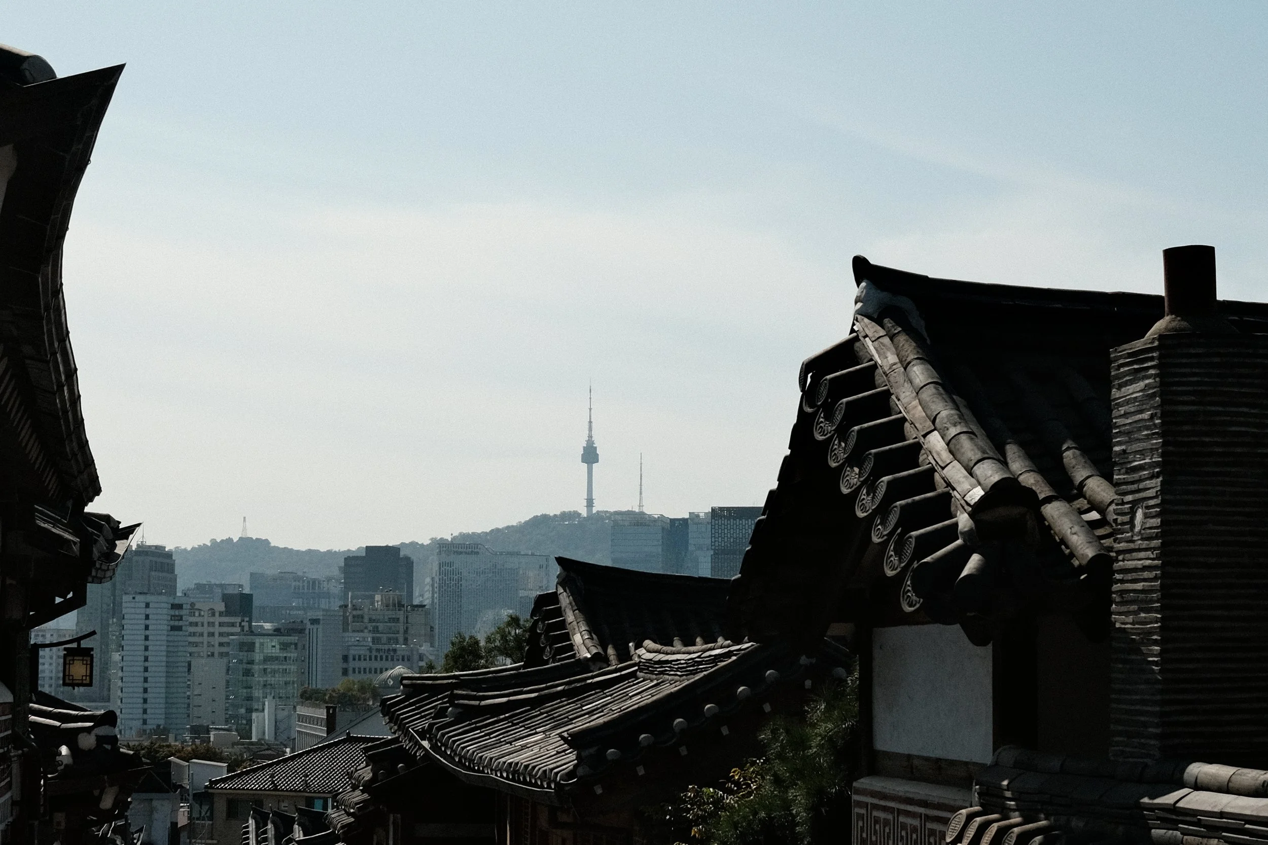 At the top of the hill in Bukchon, you'll find an amazing view of Namsan Tower and Seoul city.